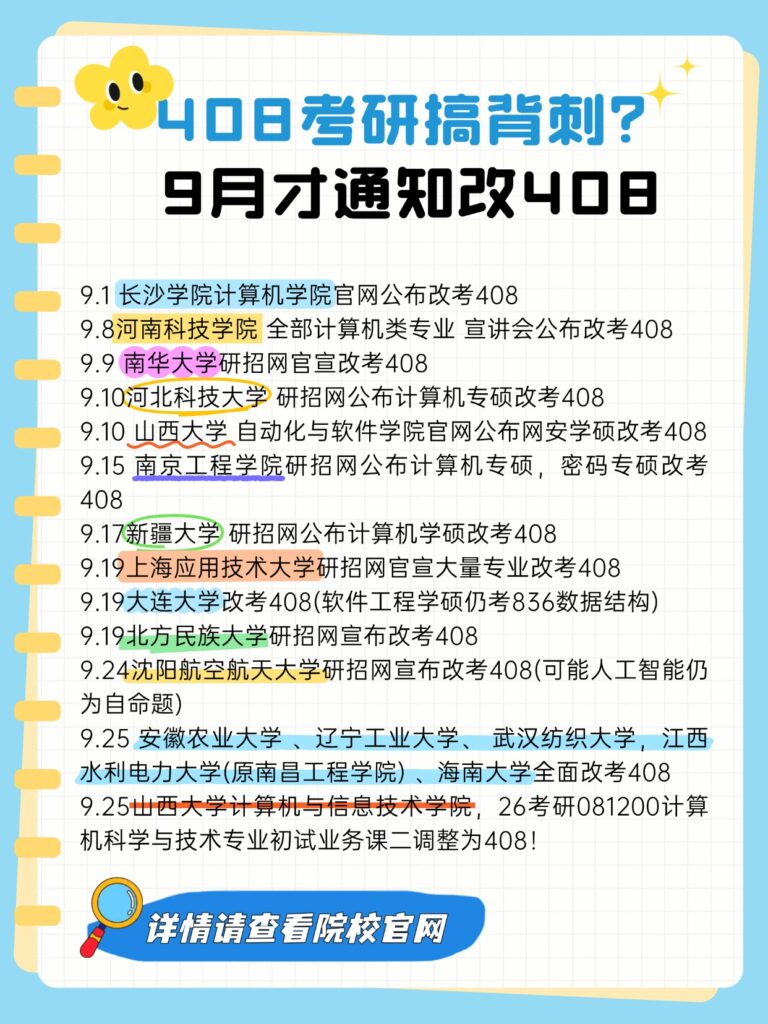 以国防科技大学为例,该校明确表示,2026年(含)以后的硕士研究生招生考试中,计算机科学与技术专业的“计算机专业基础综合”科目将调整为408统考。