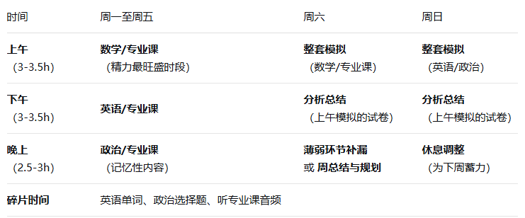 三、各科目冲刺复习策略与时间分配(每日建议学习时长:10-12小时)