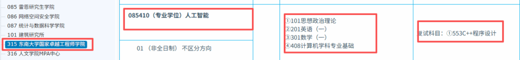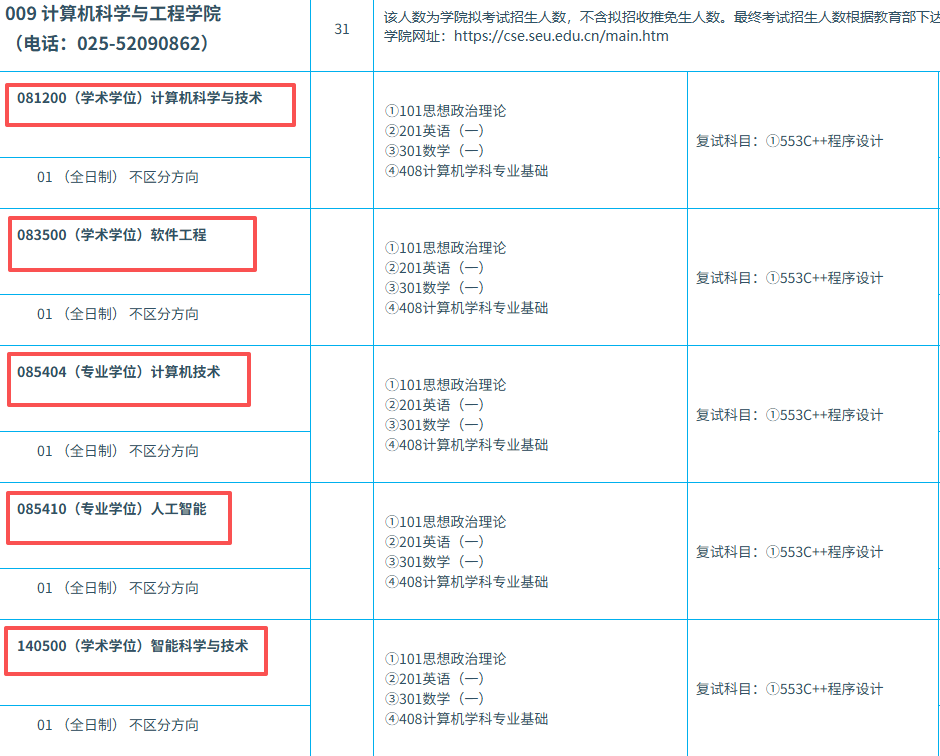 东南大学 2026 年硕士研究生招生目录已经发布,计算机类考生可报考的院系及专业(方向)如下。