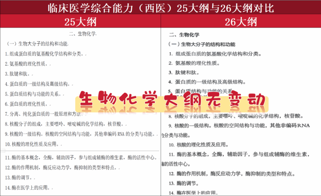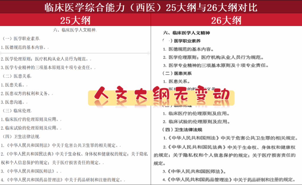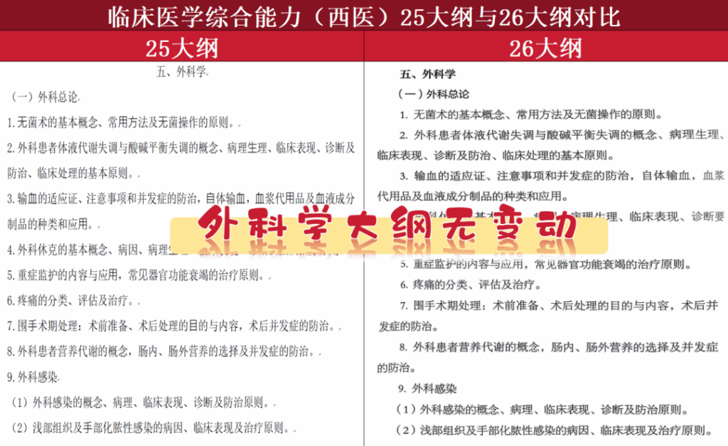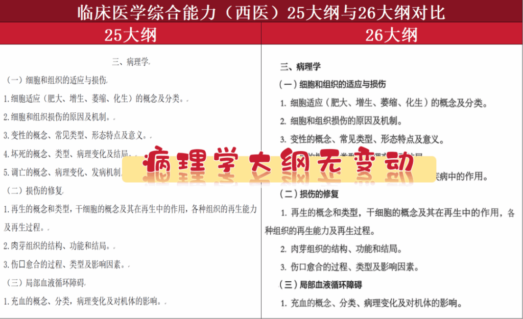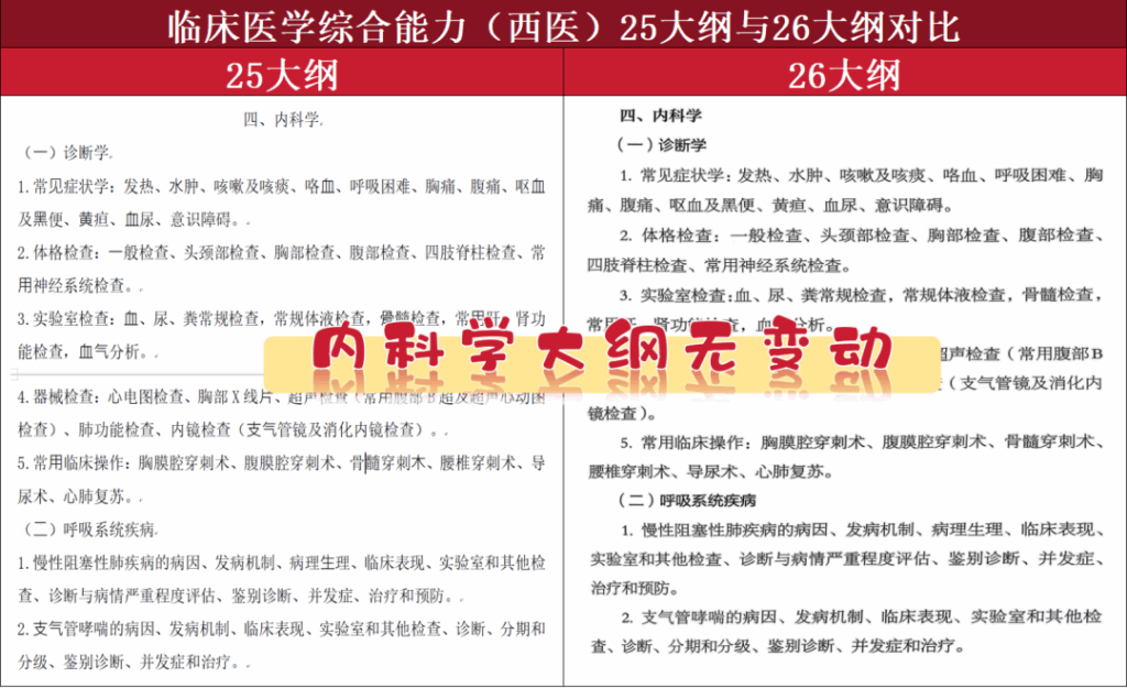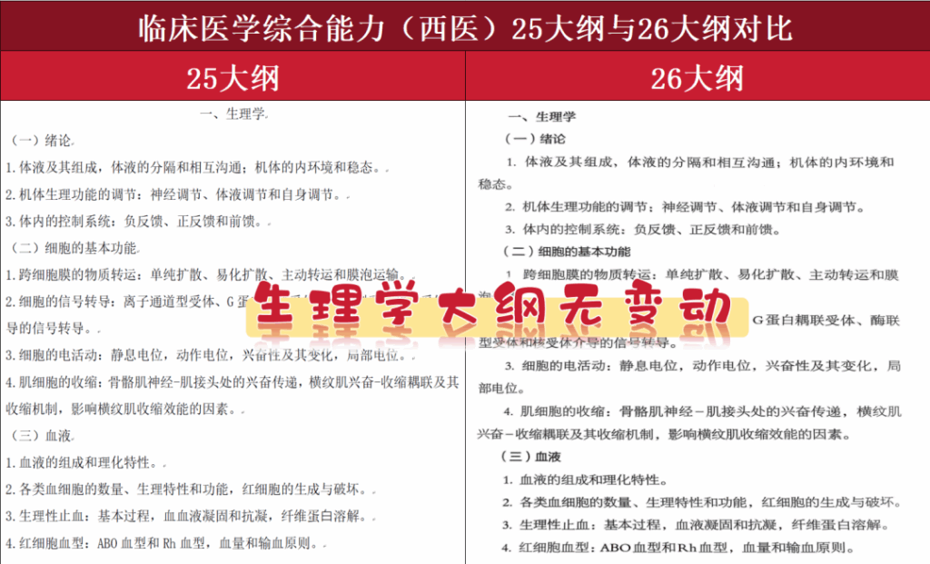 25西医考研和26西医考研的详细大纲对比如下,虽然无变动,但是考试形式、试卷结构、生理/生化/病理/内科/外科/人文精神考察内容建议提前了解哦!