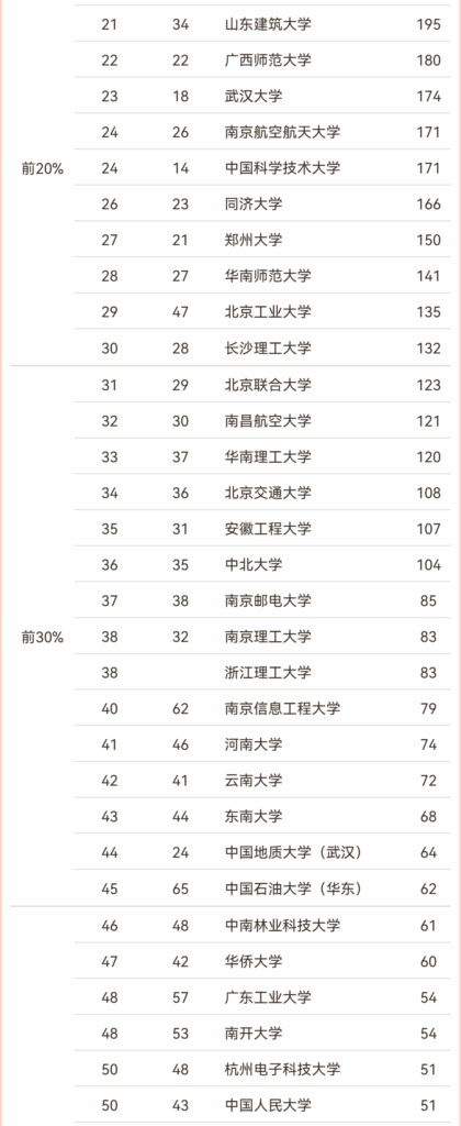 篇幅有限,这里只列举了TOP50院校,完整版请移步软科查看。