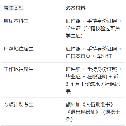 - 证件照:近 3 个月无妆免冠,白 / 蓝色背景,宽高 3:4,露五官不戴眼镜,不 P 图(用于准考证、录取通知书)。