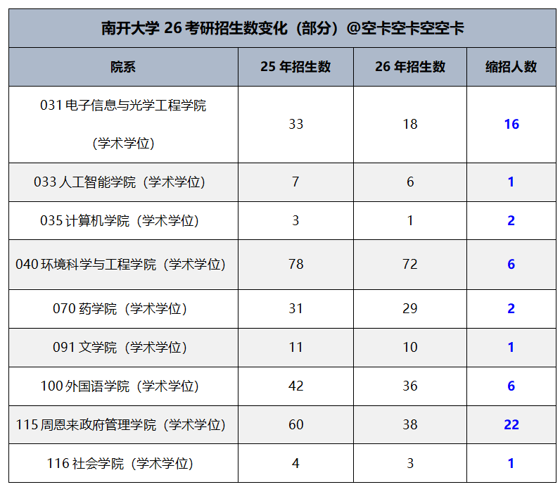外国语学院的学术学位专业今年缩招10人;周恩来政府管理学院缩招17人