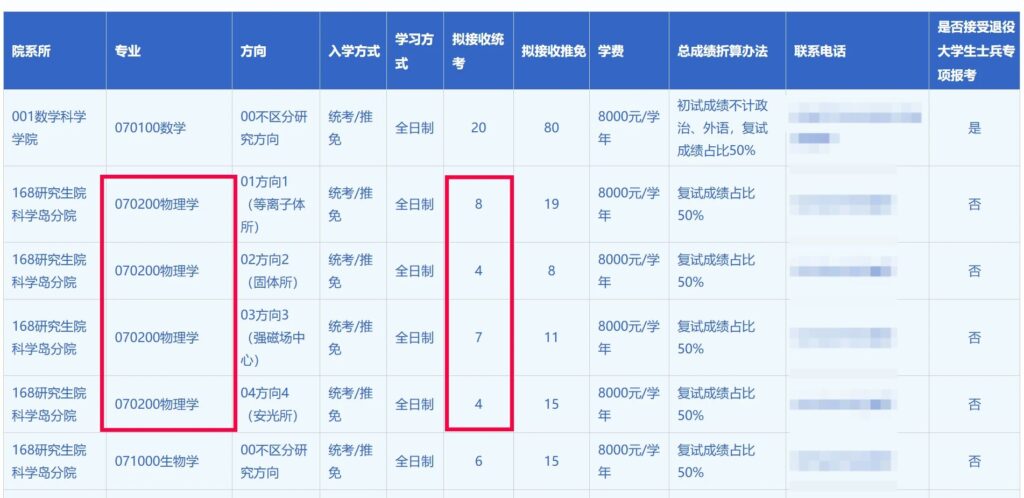 中科大部分院系专业招录人数同样有所缩减,例如070200物理学专业的若干个研究方向相较往年缩招1至2人