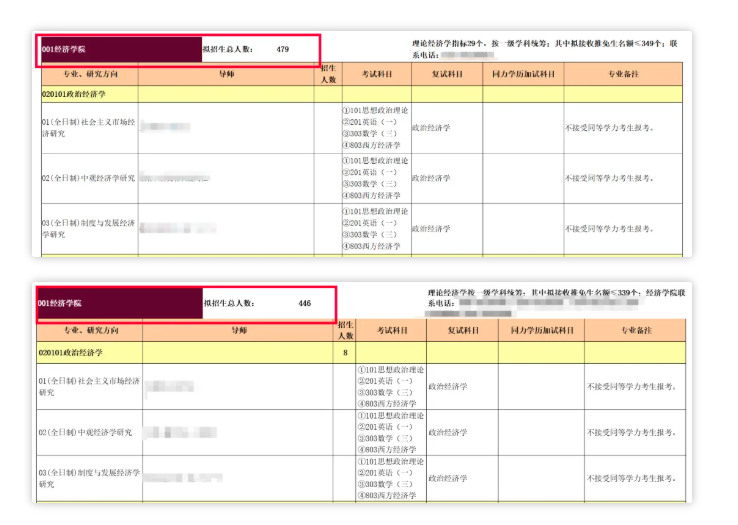 总数上看起来差不多,但具体到学院专业上就很明显。比如是经济学院,减少了33个名额