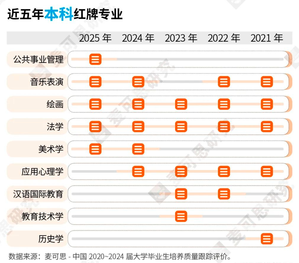 注:红牌专业指就业落实率、薪资和就业满意度综合较低,且市场需求减少或增长缓慢的专业